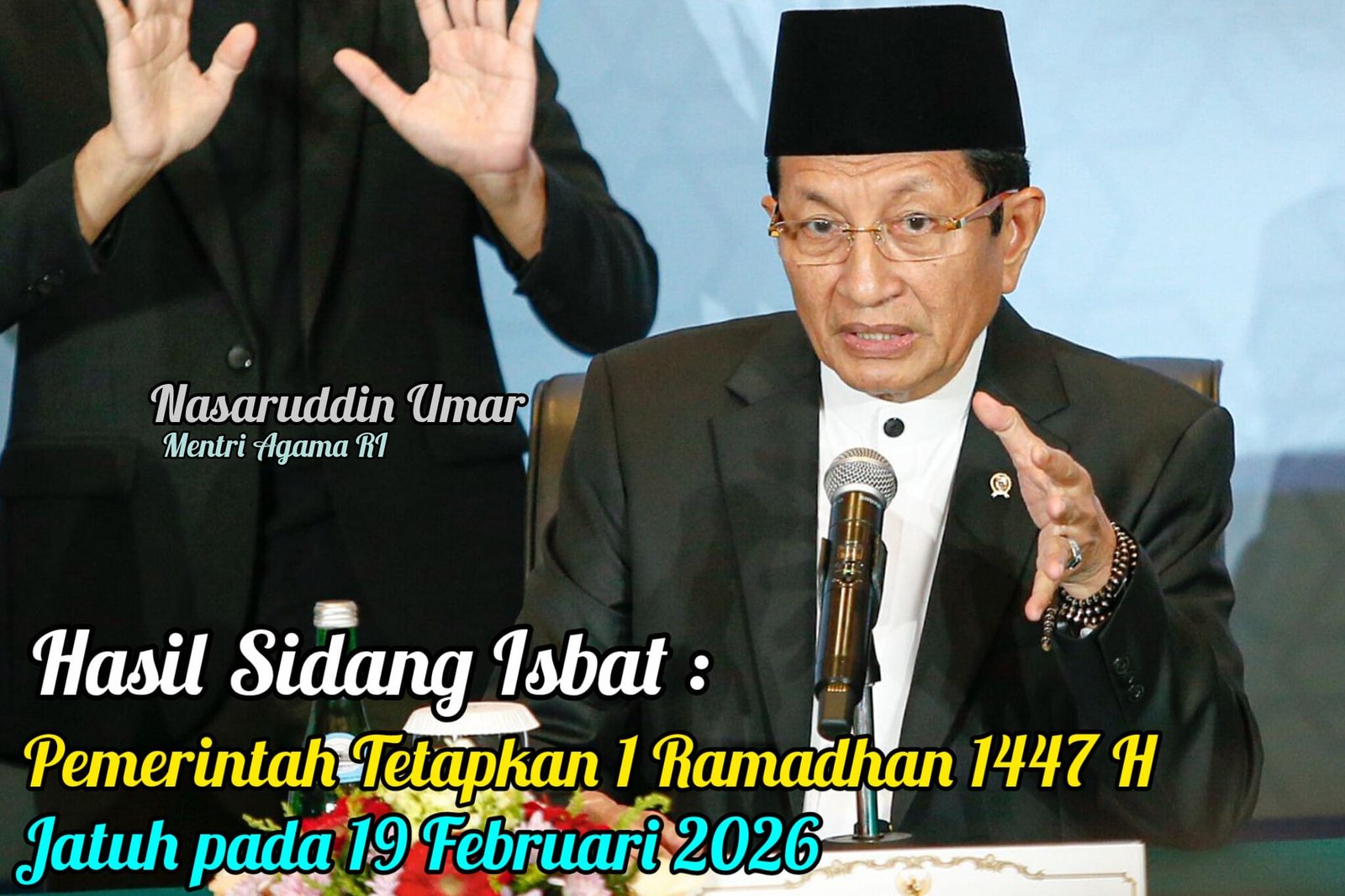 “Disepakati bahwa 01 Ramadhan 1447 Hijriah jatuh pada hari Kamis, 19 Februari 2026. Demikian hasil Sidang Isbat yang baru saja kita laksanakan,” ujarnya di Hotel Borobudur Jakarta, Selasa (17/2/2026).